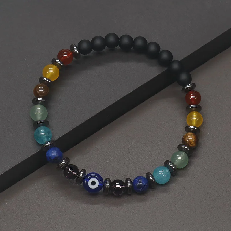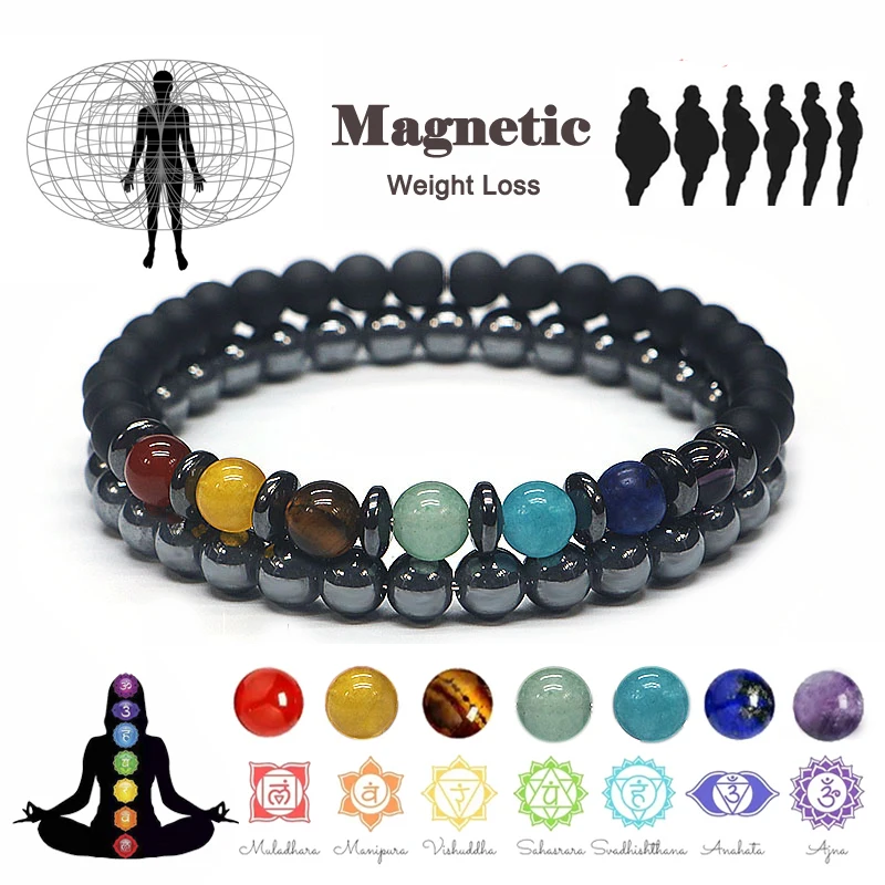 2022 6mm Yoga 7 Chakra Bracelet Men Women Lost Weight Magnetic Hematite Turkish Evil Eye Bracelet For Men Spiritual Jewelry