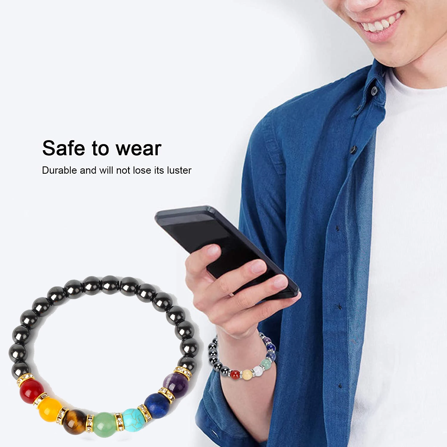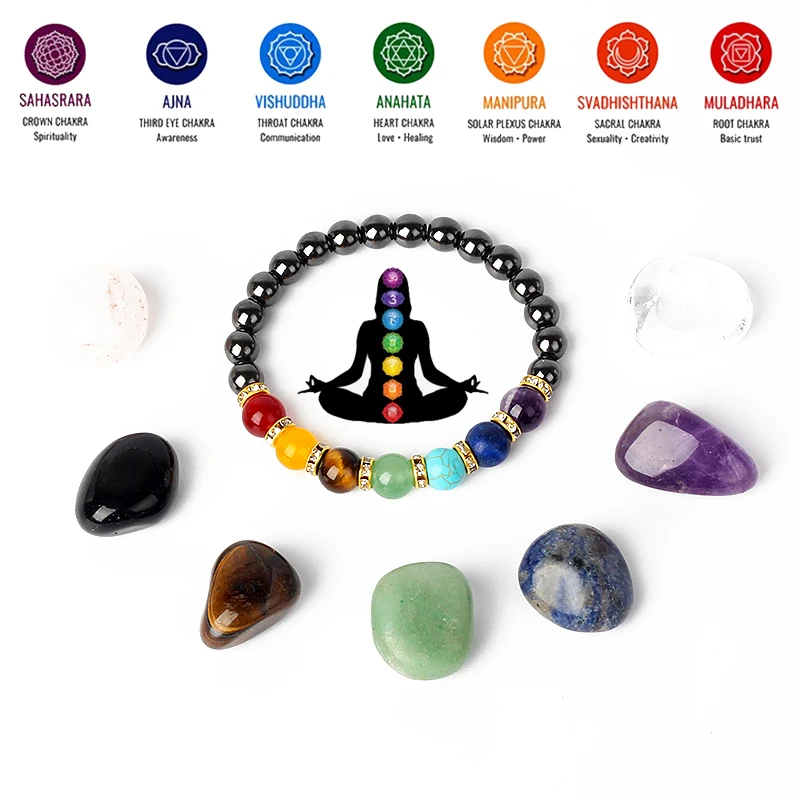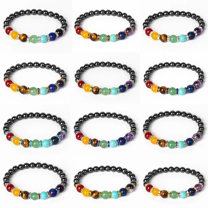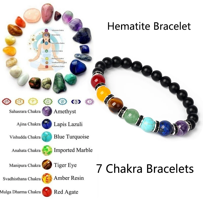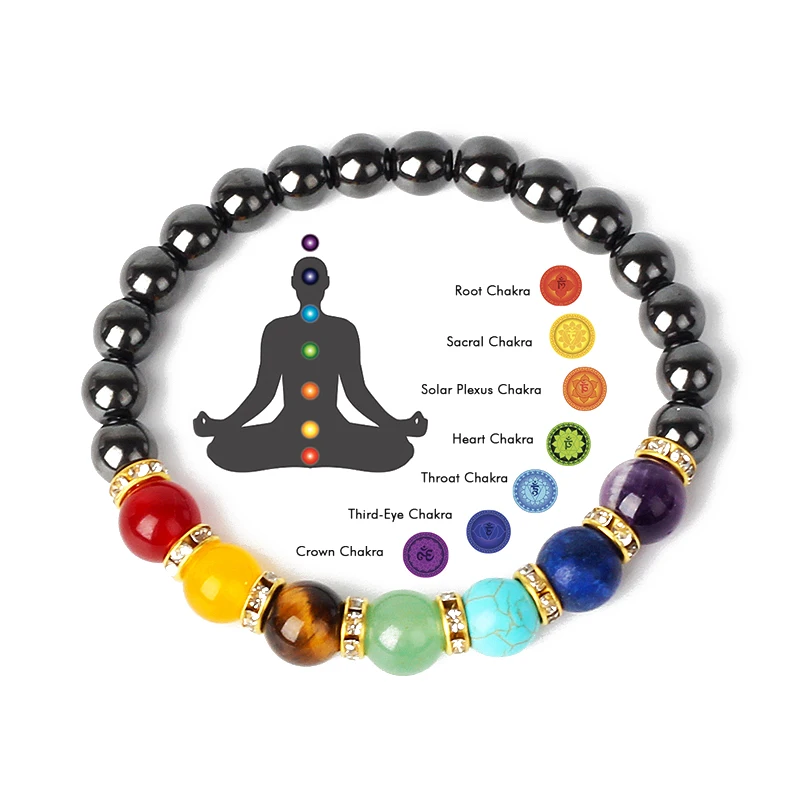 Name:Natural Hematite 7 Chakra Bracelets Men Reiki Energy Stone Weight Loss Yoga Bracelet Slimming Woman Health Care Therapy Jewelry